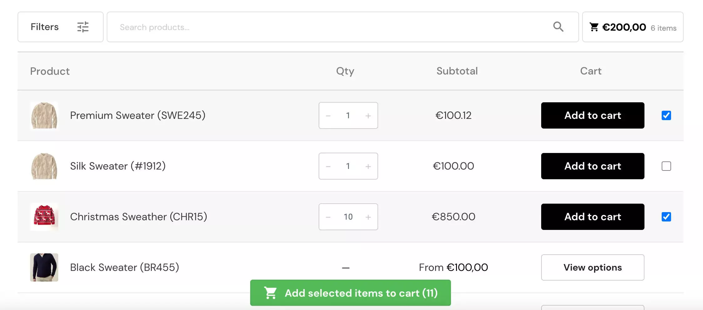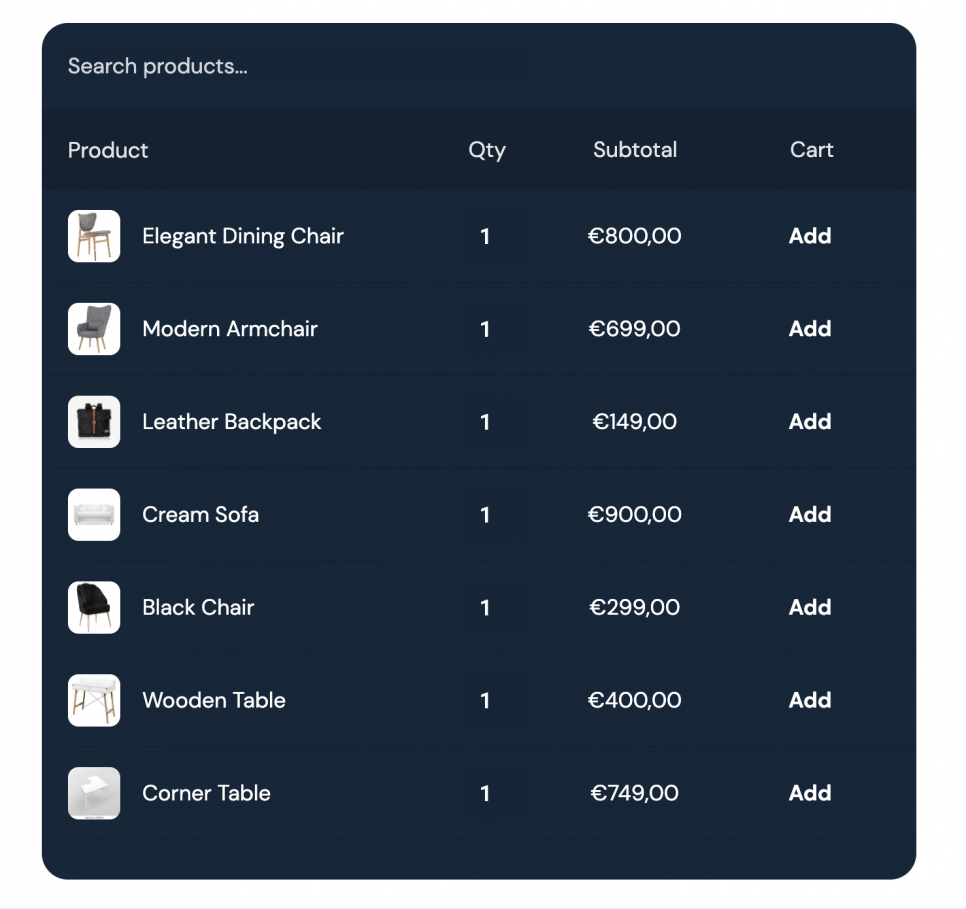 No products in the cart.